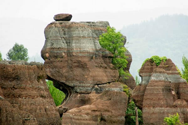 這些石柱不但顏色各異,而且大小不等。有的高達(dá)七、八米,而有些則像半埋于地下的巨獸骨架。一位村民告訴記者,現(xiàn)在石林沒有以前壯觀,都長(zhǎng)渣子(灌木)了。原因是由于山頂樹木減少,雨水將泥土帶下山,很多石頭都被埋在土下,后來這些地方都開墾了農(nóng)田,石林也被永久覆蓋。