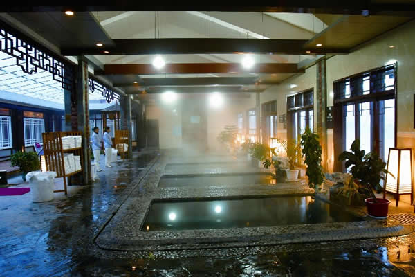 溫泉區(qū)的右方,集中了六個特色小溫池“六福湯”,這里能讓您感受到人參、蘆薈、靈芝、當歸、薄荷、艾葉三丫苦六種溫泉的神奇魅力和中醫(yī)藥文化的博大精深。溫泉的理療作用已補越來越多的熱愛健康的人士所接受,能起到舒筋活絡、強身健體、潤夫養(yǎng)顏、安神、抗衰老等保健作用。隨著人們生活水來的提高的旅游觀念的發(fā)展,溫泉休閑旅游已成為一種時尚。