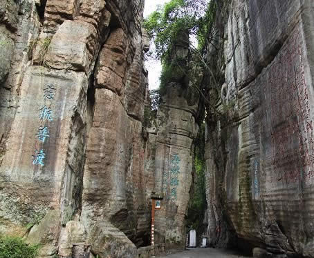 清嘉慶年間辟有洗心池。“不二門(mén)”如斧斫神劈,為石林天成,石林壁上鐫滿歷代文人的詩(shī)詠。這里古柏參天,藤蘿倒掛,環(huán)境幽美。有壁石如書(shū)的萬(wàn)卷書(shū)者,有嵐霧束腰的七級(jí)青石培英塔。凝神盤(pán)坐的南海觀音是一塊天然造型的巨石,惟妙惟肖。觀音巖周?chē),環(huán)繞著具有明清風(fēng)格的地藏庵、嵩山堂、水府閣等建筑物,布局靈巧緊湊,主題鮮明,因勢(shì)造景。景點(diǎn)間曲徑迂回,迷趣深?yuàn)W,稱(chēng)八陣圖。景區(qū)內(nèi)的河灘上有兩處溫泉,氤氳縈繞,水溫適宜(41℃),水質(zhì)良好,能治療多種疾病?h城人民經(jīng)“不二門(mén)”前往溫泉就浴者絡(luò)繹不絕,現(xiàn)又增建了石牌坊和民俗博物館。