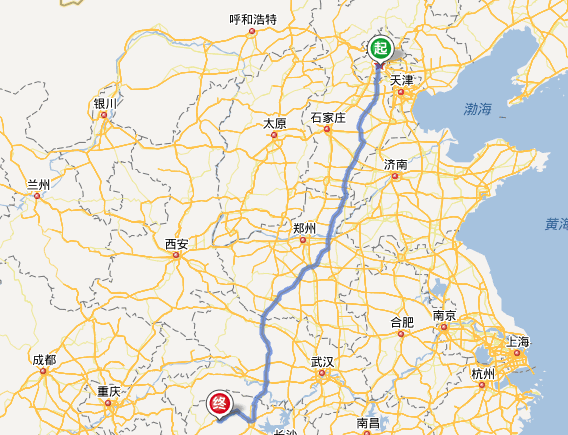 北京去張家界自駕車線路圖全程高速):