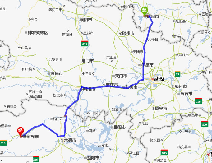 信陽(yáng)去張家界自駕車自助游線路圖全程高速):