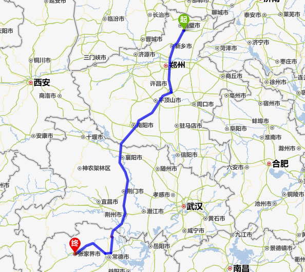 鶴壁去張家界自駕車自助游線路圖全程高速):