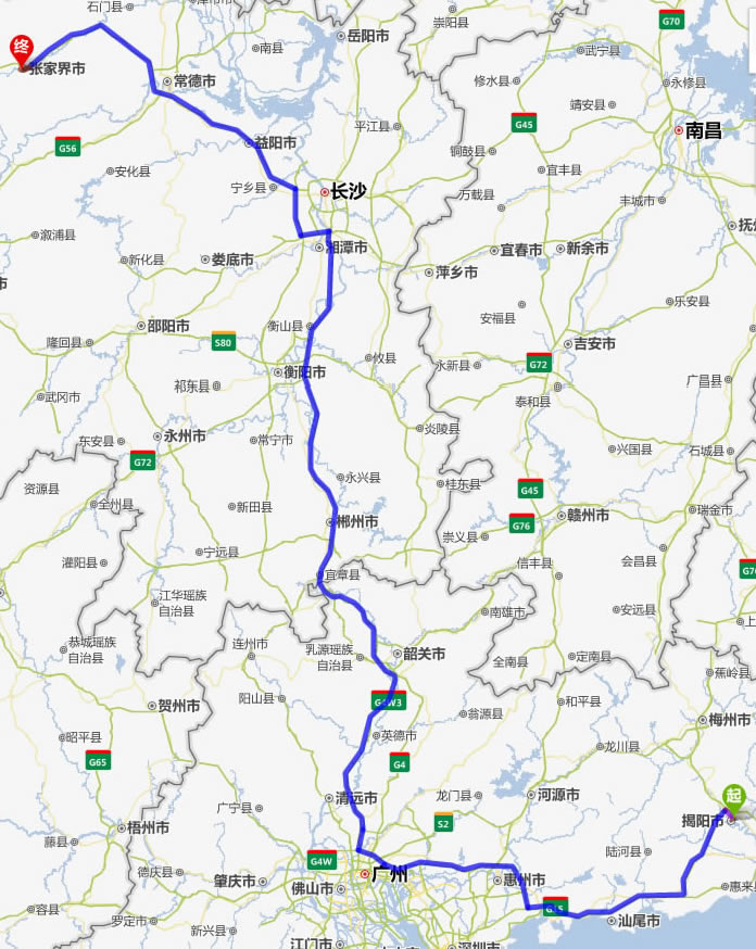 現(xiàn)在位置:張家界旅行社->交通指南->自駕車路線 -> 揭陽(yáng)到張家界旅游自駕車線路,揭陽(yáng)去張家界自己開車要多長(zhǎng)時(shí)間,有多少公里