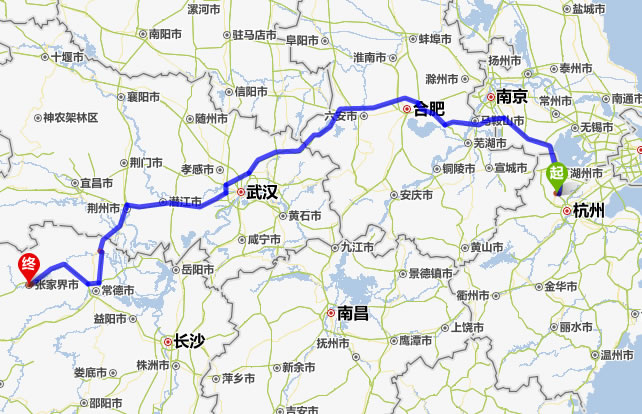德清去張家界自駕車(chē)自助游線路圖全程高速):
