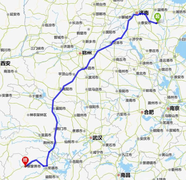 沂源縣去張家界自駕車自助游線路圖全程高速):