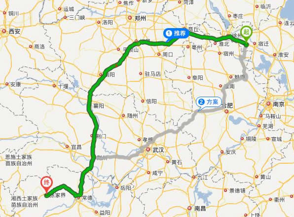睢寧縣到張家界自駕車旅游線路(距離最短)