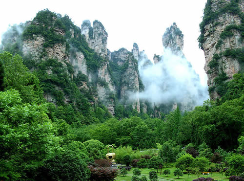 下 午:中餐后游玩世界自然遺產(chǎn)的核心---袁家界景區(qū)(包含電影《阿凡達(dá)》中“哈利路亞山”原型“乾坤柱”、天下第一橋、九天玄梯、乾坤柱、連心橋、中韓友誼亭、神龜問天、迷魂臺(tái)等景點(diǎn)) 。袁家界,是張家界森林公園山頂觀景最為奇特壯觀景區(qū)之一,與黃石寨遙遙相對(duì)卻勝過它…之后便乘坐大約20分鐘的環(huán)保車可到大觀臺(tái)住宿地休息,體力好者導(dǎo)游可帶去游玩未開發(fā)景區(qū)——老屋場風(fēng)景區(qū),觀原生態(tài)的空中田園及神兵聚會(huì)絕景。
