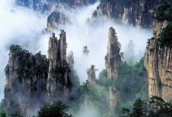 上 午: 遠觀霧色百丈峽、踏入神秘的潘多拉世界,游覽張家界核心景區(qū)(門票已含)精品游覽線——【袁家界景區(qū)】(乘百龍?zhí)焯萆闲,門票72元/人已含):袁家界風景以雄、奇、險、峻著稱,在十多華里的環(huán)山游道上,沿途景色美不勝數(shù),其中可觀賞到:電影《阿凡達》中“哈利路亞山”原型“乾坤柱”、迄今為止發(fā)現(xiàn)落差最高的天然石橋——天下第一橋(橋墩絕對高度354米)、九天玄梯、八卦圖、猿人望月、拜仙臺、迷魂臺、后花園等景點;乘景區(qū)環(huán)保車(約40分鐘)前往游覽峰林奇觀--【天子山】:天子山被譽為峰林之王,千座山峰兀立云霧中、風光旖旎、景色秀美,游覽天子閣、西海石林、御筆峰、仙女獻花、賀龍公園、石船出海、賀龍銅像等景點。