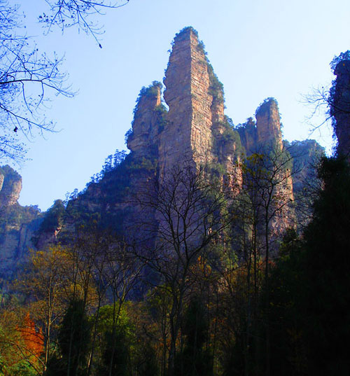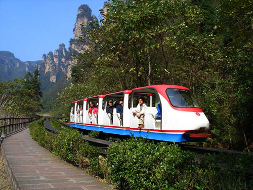 下 午:可選擇步行(步行下山一般時間為2小時左右)或者乘坐天子山索道(索道票72元/人自行購買)下山,游覽巧奪天工的--【十里畫廊】,可以選擇步行或者乘坐觀光小火車游覽十里畫廊(觀光小火車票單程38元/人自行購買),沿途欣賞天臺三姐妹峰、向王觀書、黃昏戀、壽星迎賓、采藥老人、錦鼠觀天、猛虎嘯天等景點;